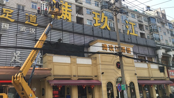 为落实军运会保障线路的立面环境整治任务,常青街于3月8日调集人员和动用多台次机械对青年路与北湖西路交汇处的万景国际小区商铺立面违规招牌进行拆除,该任务于3月12日下午6时基本完成。