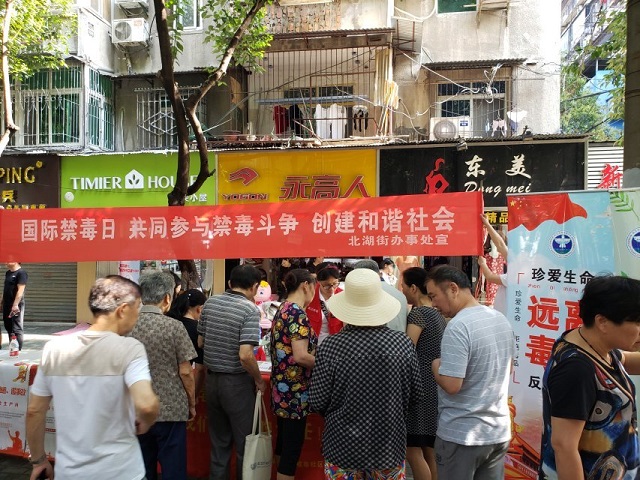在2019年国际禁毒日来临之际,为进一步培养广大人民群众的识毒、防毒、拒毒意识,普及禁毒知识。6月14日上午,在北湖街街工委领导下,北湖中心戒毒社区全体禁毒社工、禁毒志愿者,大家团结一心,共同举办了一场声势浩大的国际禁毒日暨创建平安北湖的宣传活动,此次活动以“国际禁毒日,共同参与禁毒斗争,创建和谐社会”为主题,旨在让禁绝毒品的意识外化于形,内化于心。
