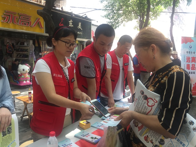 活动现场,通过指导居民群众扫描江汉区禁毒关注号,普及网络禁毒宣传阵地,吸收和扩大社会面居民禁毒意识。