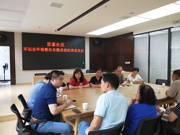 2019年6月19日上午9点,常青街富豪选区邀请了部分辖区选民就此次军运会立面整治及微改造等选民关注的热点问题,在社区会议室召开听证会。