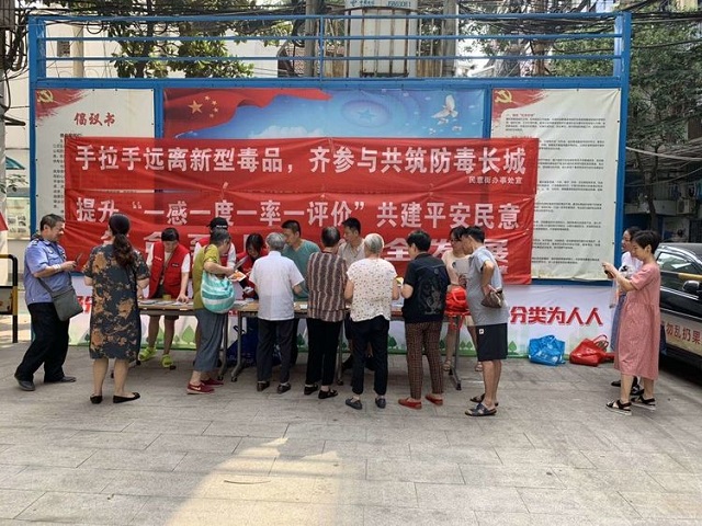 为加强辖区居民禁毒意识和抵制毒品的能力,6月25日上午,民意街公共安全办联合戒毒中心在多闻里小区人流集中地组织开展禁毒宣传活动。活动现场,通过讲解毒品知识、毒品危害等相关内容,累计发放禁毒宣传资料300余份,共吸引400余名群众参与其中。
