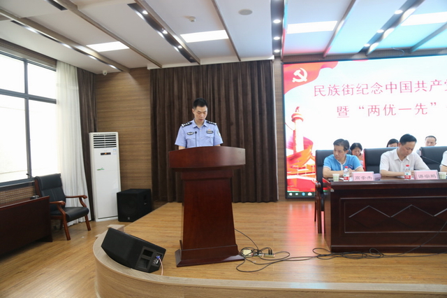 会上,万年社区党委书记陈汉发、民族街派出所党支部代表陈纲、和平社区党委书记郭利、民族街网格中心负责人李国勇分别代表先进基层党组织、优秀党务工作者和优秀共产党员作了发言。