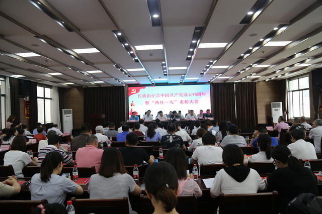 街工委王善鼎书记在讲话中重温了党的98年光辉历程,表示希望通过表彰大会,动员和激励全街党员干部群众团结奋进、务实重行、担当作为,进一步坚定理想信仰,进一步坚守初心使命,进一步向先进典型看齐,为江汉区的建设、民族街的发展贡献力量。