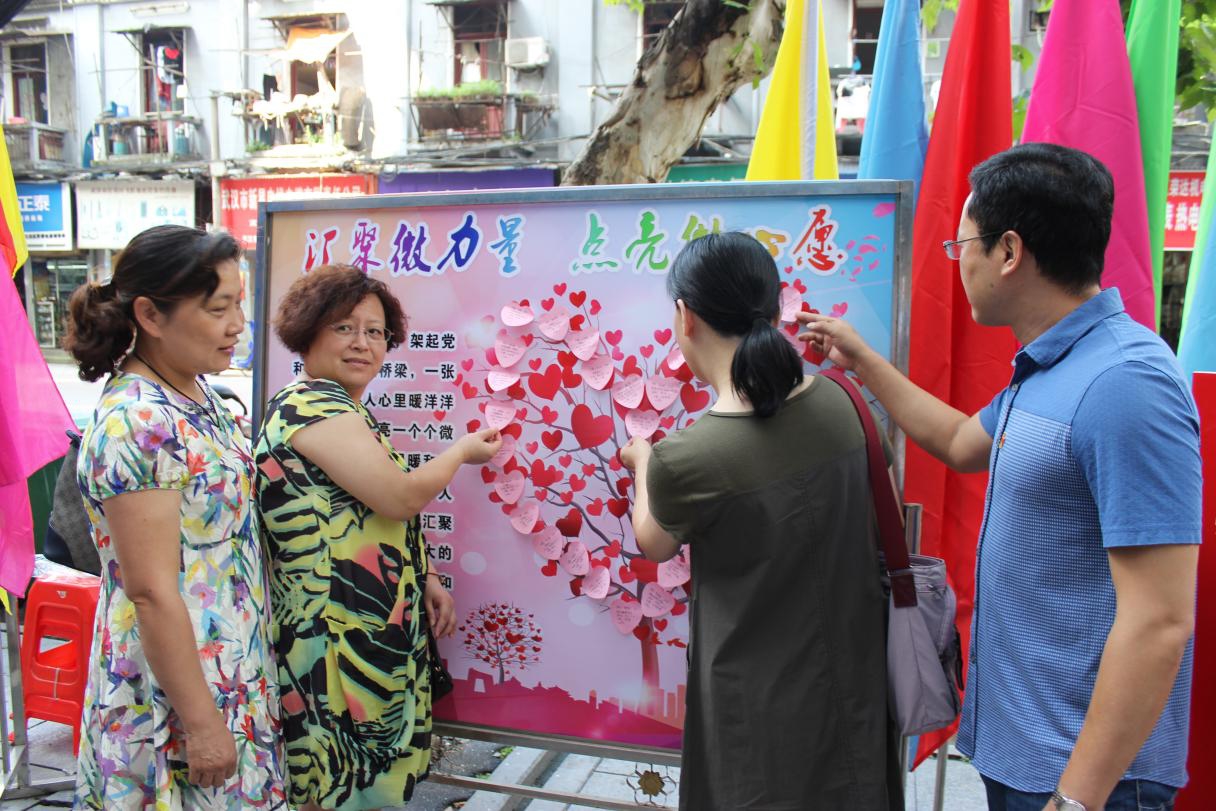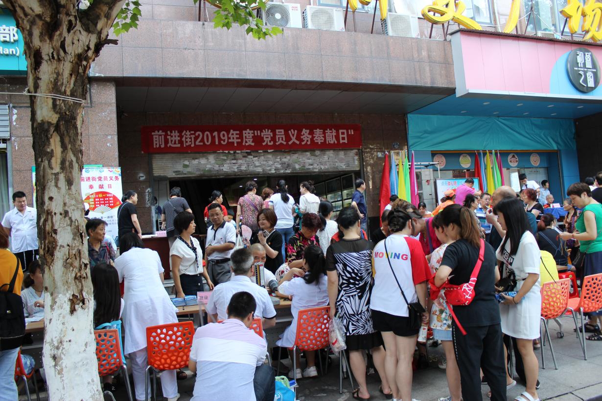 为庆祝建党98周年, 6月30日,武汉市江汉区前进街在济生社区御美广场开展“不忘初心做奉献 牢记使命勇担当”党员义务奉献日活动。街机关全体党员,共建单位江汉区文化馆、社区卫生服务中心、司法所、房地公司、派出所党员干部以及双进双服务单位区教育局、区招生办、区委办党员干部以及辖区党员志愿者共200余人参与活动。街道在职党员、共建单位党员、双进双服务服务单位党员志愿者以及辖区党员志愿者立足岗位,结合辖区特点,从广大人民群众最关心的身边点滴小事做起做好义务奉献,受到群众热烈点赞。