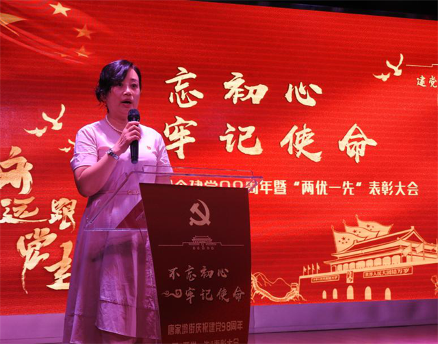 在观看完《武汉每天不一样》、《平安江汉》、《精致江汉》等宣传视频后,活动拉开序幕。街工委书记耿世文带领在场党员一起奏唱国歌。街工委副书记、办事处主任滕宏宣读了《唐家墩街工委关于表彰先进基层党组织、优秀共产党员和优秀党务工作者的决定》后,街全体领导为“两优一先”代表颁奖。