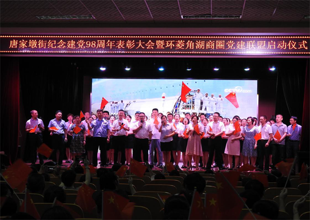 2日,唐家墩在武汉市励志中学举办庆祝建党98周年“两优一先”表彰大会暨环菱角湖商圈党建联盟综合党委成立授牌仪式。