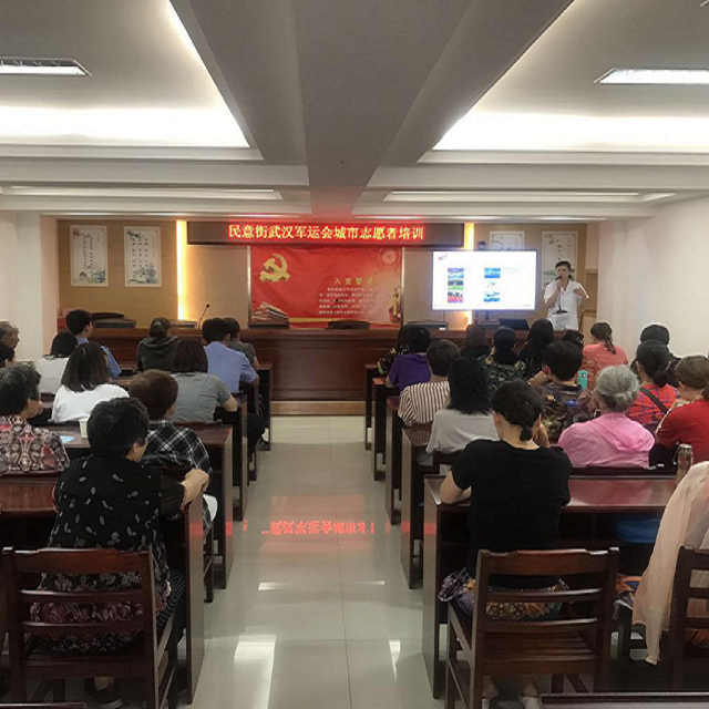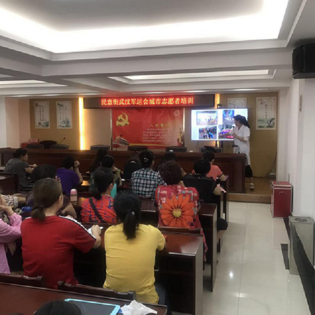7月11日下午,民意街开展了以“军运志愿、救援助力”为主题的活动应急处理、医疗急救知识培训活动。培训会上,专业的医疗培训老师主要从军运会基本信息,应急处理方式,踩踏事故发生的原因及保护举措,救护常识,轻度中风判断与心肺复苏操作等多方面进行宣讲科普。此次医疗急救知识科普培训活动共有70余名志愿者参与,为即将到来的军运会志愿服务打下了坚实的基础。