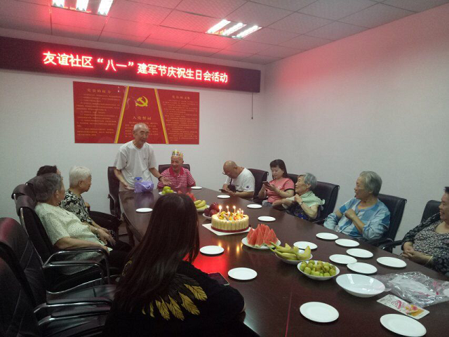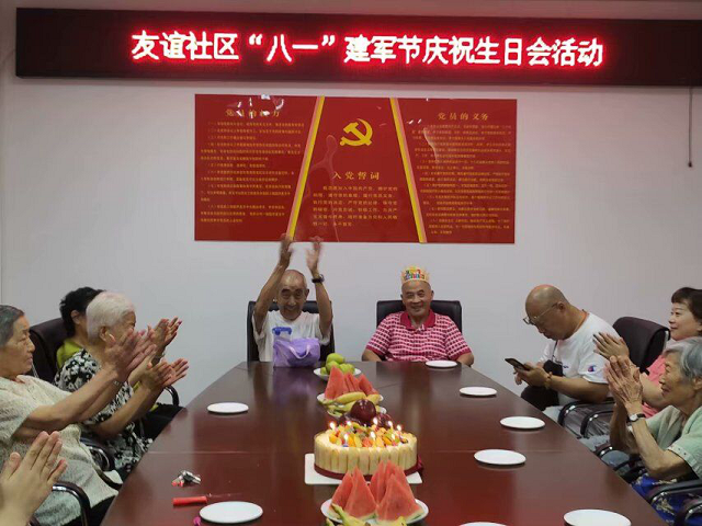 为了庆祝“八一”建军节,8月1日下午,民意街友谊社区为退伍老兵举办了一场庆祝“八一”建军节生日会活动,并邀请辖区20余名老年人们一同参加。活动现场,退伍老兵为大家分享了抗美援朝战争的亲身经历和军旅生涯生活的点点滴滴,赢得现场阵阵掌声,气氛十分融洽。