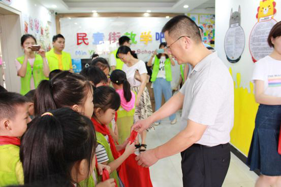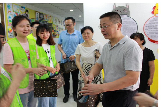 8月8日上午,区委副书记、区委政法委书记陈红山到民意街舞台社区实地查看青少年暑期托管工作,详细了解了暑期托管课程及活动开展情况,询问了解孩子们参与托管的感受与收获,并向参与托管的青少年及大学生志愿者赠送了慰问物资。民意街党工委书记余建清、江汉团区委书记任恒丽、民意街办事处主任文芳陪同调研。友谊青少年空间社会工作服务中心项目社工向陈书记详细介绍了托管室孩子们的手工作品及垃圾分类环保艺术创作理念,陈书记对此表示赞赏,并希望大家群策群力共同做好青少年暑期托管工作,把关心青少年健康成长的事情做好做实,让双职工家庭放心,让老百姓满意!