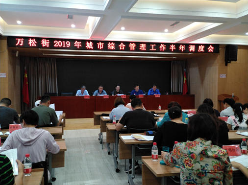 8月14日下午,万松街召开2019年城市综合管理工作半年调度会。街办事处主任金捷、街道武装部长罗伟、街公共管理办主任苟同生和驻街执法队中队全体队员、城管协管队骨干、万松环卫所负责人、两个环卫外包公司负责人以及各社区主任、卫生主任共50余人参加会议。