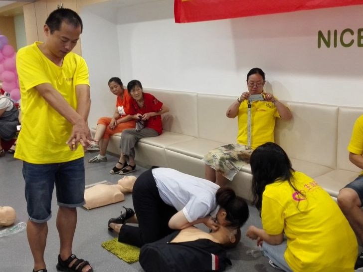 2019年8月22日上午9:30,江汉区中山大道818号平安大厦10楼,“守护生命情暖平安应急救护培训”在武汉健高儿科举行。现场聚集医护人员、儿童家长、佳爵物业、玺普环保、楼宇党员、社区居民等近50人,上演“与时间赛跑、向生命敬畏”的公益救援大演练。