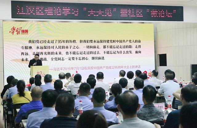 8月30日上午,区委宣传部和民意街在街舞台社区联合举办江汉区理论学习“天天见”暨社区“微论坛”活动。区长李湛、区委常委袁继刚、张劲、叶劲松、严国运、程自武、胡娟等领导出席本次活动,区政法委、区直机关工委、区总工会、辖区席位制成员单位、民意街大工委成员单位、人大代表、团员代表、街领导班子、机关干部、社区“两委”成员等200余人参加。本次活动以“初心”为主题,通过“初心”金句朗读、优秀传统文化经典解读、微型话剧《信仰》、《我师父的初心》典型宣讲、《我和我的祖国》歌舞表演等多种形式,全方位、多角度深刻阐释了共产党人的初心和使命,进一步激发了所有党员干部“不忘初心,牢记使命”的思想自觉和行动自觉,为即将开展的主题教育活动预热升温。活动结束后,区委常委、民意街领导班子集体参加《红色足记:党史上的民意》红色文化长廊开幕展,李湛区长和袁继刚常委亲自揭幕。红色文化长廊旨在通过真实再现革命战争年代发生在民意地区的红色故事,身临其境地感受革命先烈们的初心和使命。