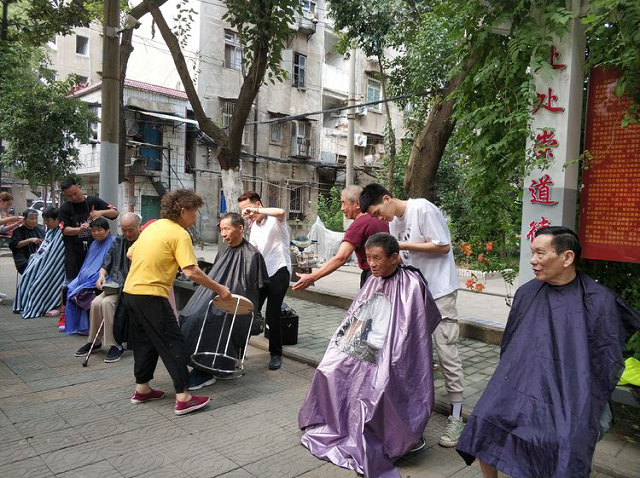 另一边,天姿爱心理发师们不仅在现场为老人们设计满意的发型,而且还为高龄、空巢、半失能、不方便下楼老人上门理发。