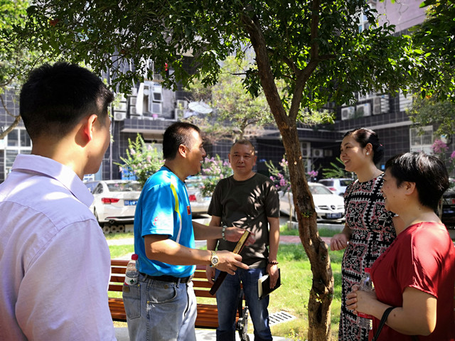 随后,社区书记们步行来到电业社区6号楼创新项目实施点位,该小区在物业抛盘的情况下,社区发动以网格支部书记查忠军为核心成员,周楚君和凌虹为骨干成员的志愿者团队,组织楼栋居民和志愿者成立自治理事会,搭建议事平台,带动社区更多志愿者参与院落自治管理,定期清洁楼道及公共院落、修剪枯枝、修缮路面、安装路灯及休闲凳等一系列美化序化公共环境。小区从原来的“原始森林”到现在的美丽花园,“废墟”变新貌,下一步,社区将以睦邻楼道建设为抓手,进一步激发小区居民的参与意识,美化楼道环境,增强睦邻文化宣传。