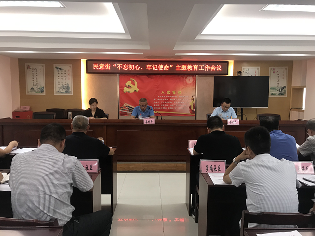 9月19日下午,根据区委的统一安排部署,民意街工委召开“不忘初心、牢记使命”主题教育工作会议,对街辖各基层党组织“不忘初心、牢记使命”主题教育进行动员部署。区委第三巡回指导组组长蔡利华一行进行莅临指导。工委书记余建清作动员部署。会上,印发《关于在民意街开展“不忘初心、牢记使命”主题教育的实施方案》、《民意街基层党组织“不忘初心、牢记使命”主题教育巡回指导组工作方案》。街机关、事业单位党组织负责人、社区党委书记、副书记、非公党组织书记等60人参会。会上,街工委书记余建清就街道开展主题教育作动员部署,提了三点要求:一是切实提高政治站位,增强开展主题教育的思想自觉、政治自觉和行动自觉;二是准确把握目标要求,紧密结合街道工作实际推动主题教育;三是全面加强组织领导,确保“不忘初心、牢记使命”主题教育有序有力开展。区委第三巡回指导组组长蔡利华在讲话中强调:一要牢牢把握主题教育的总体要求;二要紧紧抓住主题教育的对象重点;三要切实增强主题教育的实效性针对性;四要全面压实主题教育的领导责任。