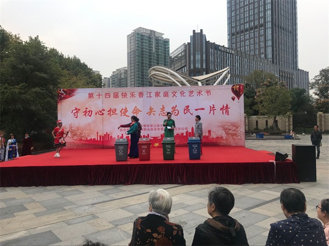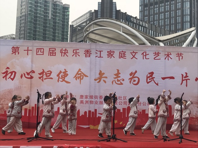 为深入推进第二批“不忘初心、牢记使命”主题教育,落实推进“民有所呼、我必有应”改革精神,繁荣社区红色文化”。唐家墩街香江社区党委于11月6日下午,在菱角壹号广场举办主题为“守初心担使命、矢志为民一片情”暨十四届香江文化艺术节大型文艺汇演。市国资委、区人力资源局、区科协、区经信局、区菱角湖公园管理中心、子湖实业、三峡电能、农商行江汉支行、禹洲物业服务有限公司武汉分公司等共计10余家共建单位、环菱角商圈党建联盟成员单位,200余名党员群众积极参与其中。
