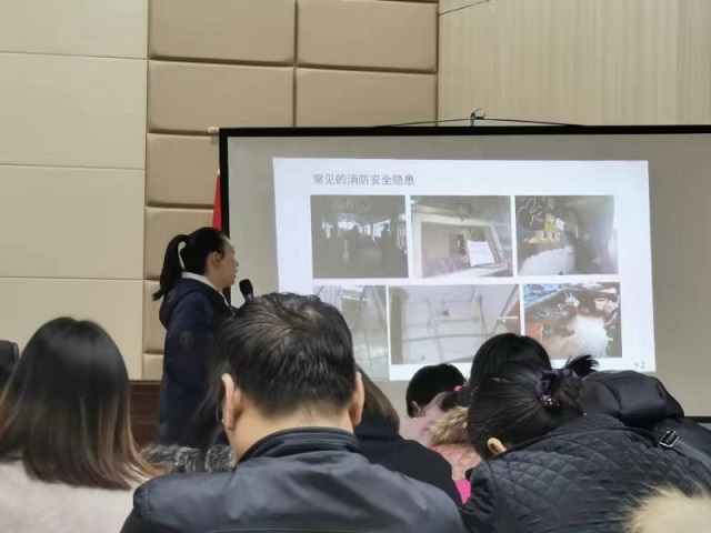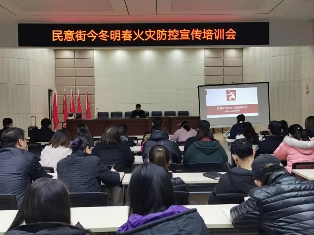 12月19日上午,民意街开启今冬明春火灾防控宣传培训会,民意街相关科室领导、社区书记、社区群干、网格员、社区义务消防队等60余人参加。会上,街政法主任汤开耀通报了辖区内发生的两起火灾,消防讲师陆琳为大家讲解了消防隐患排查的内容。通过讲解各地火灾事例和火灾事故追责、常见的消防隐患、四个能力、灭火器灭火栓的使用方法等消防知识,有效地提高了社区工作人员的消防意识,为辖区安全生产打下了坚实的基础。