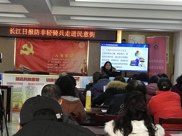 26日上午,长江日报“防非轻骑兵”走进民意街,面向社区群众普及防范非法集资、“校园贷”、“套路贷”、“养老贷”等非法金融活动知识。此次活动共吸引50余名群众参与,现场通过讲述非法集资的典型特征、常见手段、以及最新的“马甲”,进一步提高了辖区群众对非法集资危害的认知,增强其风险防范意识。
