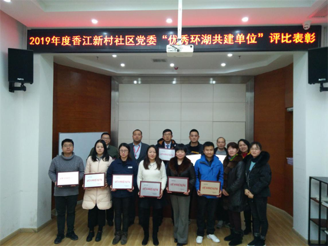 为切实加强城市社区治理建设,增强党建统领,秉承“聚合基层组织、聚结环湖联盟、聚拢红色物业”的工作理念,全面推进党的组织和工作全覆盖。唐家墩街香江新村社区党委于14日下午召开环湖党建联席会暨“2019年度红色联盟”评比表彰活动。环菱角湖商圈党建联盟成员单位市国资委、农商行江汉支行、区人力资源局、菱角湖公园管理中心、子湖实业有限公司、平安普惠企业管理有限公司湖北分公司、北京戴德梁行物业管理有限公司、中移全通系统集成有限公司武汉中心、长江智慧分布式能源有限公司等16家积极参与。