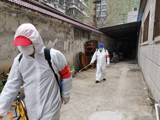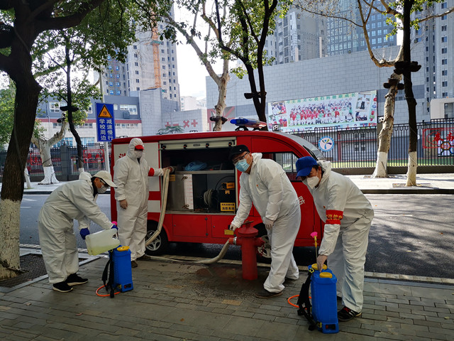 在白松社区的统一安排下,秉承“疫情就是命令,防控就是责任,社区就是阵地,消杀就是岗位,党员就是先锋,坚持就是胜利”的信念,消杀小分队的熊文杰、杨涛、蔡治、金燄四人一个多月来出色完成了白松辖区12个小区0.3万平方米、2000余户现住居民且大部分是80-90年代的老旧小区的消杀任务。