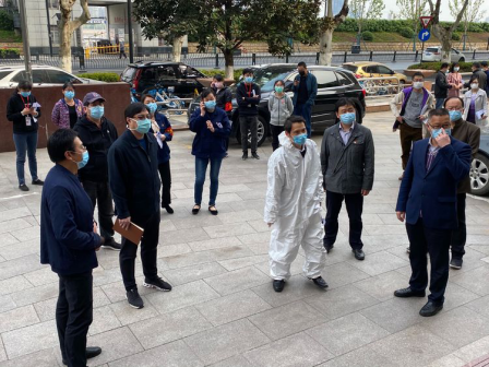 演练模拟了长航大厦一入驻单位员工体温检测超过37.3℃后的应急处置全过程,包括被就地隔离、信息上报、送医检测等步骤。在演练期间,长航大厦物业有限公司负责人向参演全体人员介绍了大厦复工期间新型肺炎疫情应急处置准备工作情况。这次演练做到了及时发现、快速处置、精准管控,有效检验了全街应对复工期间的疫情防反弹及应急处置能力,达到了查遗补漏、锻炼队伍的目的。