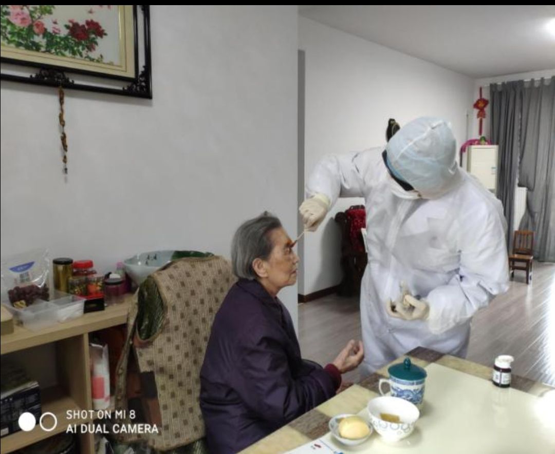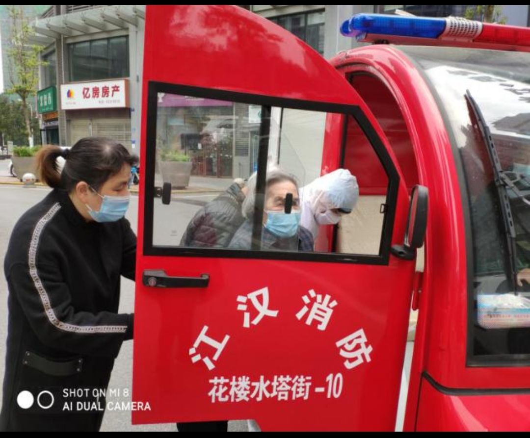 2020年4月10日家住世纪江尚小区80多岁的独居老人彭婆婆因眉头间囊肿需要就医,老人弱视几乎看不见东西,老伴身体也不好,独生女儿长期居住在国外不能照顾老人,武汉这边也没有什么亲戚。了解到老人的情况后社区黄书记迅速联系卫生院安排医生上门看诊,诊断后需要去医院做个手术治疗,考虑到老人行动不方便,社区安排网格员专人专车送老人前往卫生院接受治疗,并随时同老人远在国外的女儿保持联系告知老人的情况,后续治疗还需要去卫生院换药、打三天的消炎针。老人家属非常感谢社区在特殊时期对老人的帮助关爱,社区工作人员疫情期为老人送爱心菜、爱心鱼、米、油及防护物资等,为老人买药送药、送医看诊,她远在国外也能放心。