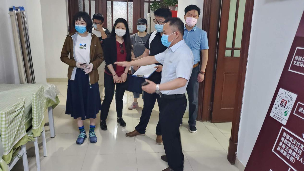经检查,江汉关博物馆防控措施落实到位。博物馆入口专人值守,出入通道分开,游客有序排队,扫码测温正常后进入,馆内进行了开馆前的全面消杀,员工就餐保持1.5米以上距离。