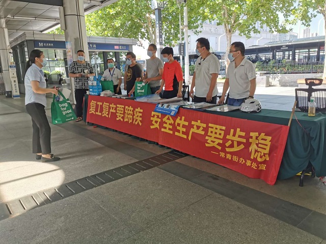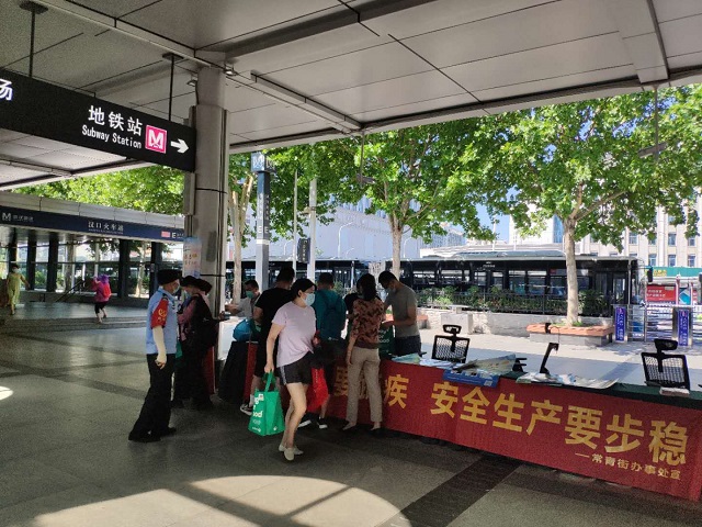 2020年6月17日上午常青街在汉口火车站站前广场开展了以“消除隐患事故,筑牢安全防线”为主题的宣传咨询活动,活动通过悬挂标语、摆放警示教育海报、发放宣传资料、现场解答等方式,向群众广泛宣传安全生产法律法规、消防安全、特种设备安全知识等安全知识。本次活动共组织安监、质监、消防以及社区安保力量共计10余人,发放宣传资料50余份,现场接受咨询10余起。通过此次宣传活动,加强了居民安全意识,营造了浓厚的学习安全知识的氛围。