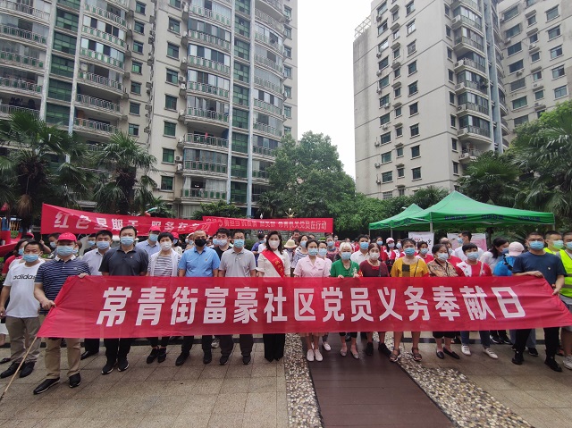 为庆祝中国共产党建党99周年,进一步巩固疫情防控成效,进一步深化主题教育成果。6月20日富豪社区党委根据常青街工委的统一部署,组织共建单位武汉市科技局、武汉金融街管委会、区妇幼、常青街机关党支部、南达大楼党委、航测实业公司、天美医院、爱尔眼科、招商银行等10余家近百名党员开展了“疫情防控当先锋、义务奉献作表率”党员义务奉献活动。