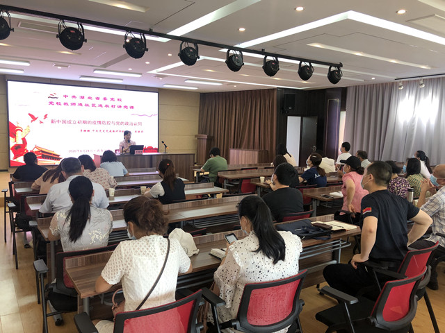 6月24日上午,中共湖北省委党校党史党建教研部副主任、副教授李珊珊深入到万松街商一社区,以“新中国成立初期的疫情防控与党的政治认同”为主题,为辖区入党积极分子、非公企业党支部成员、两新党建指导员等40余人上了一堂生动、精彩、实用的专题党课。