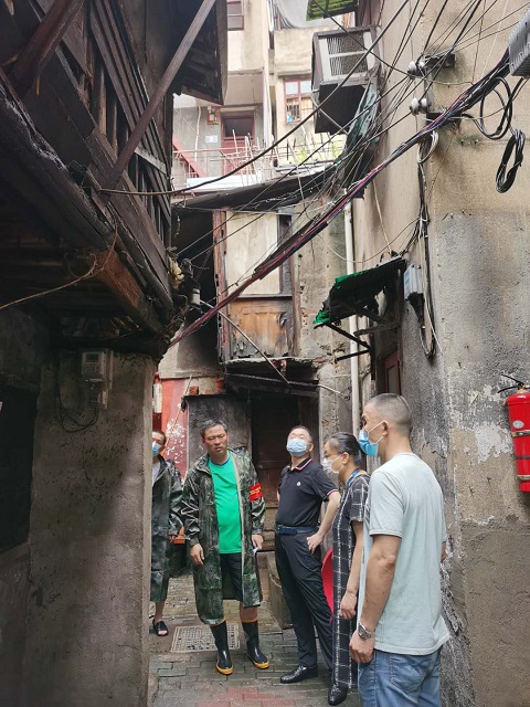 各社区工作人员、网格员对辖区的防汛重点区域开展安全隐患的排查