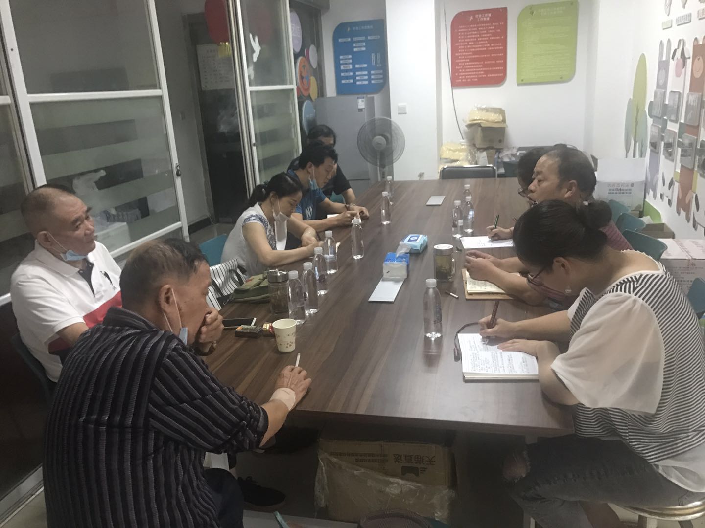 在俊华大厦业委会换届工作会上阮书记就业委会换届的流程以及业委会成员人数的界定进行了说明,物业公司以及原业委会成员也表态在社区的指导下会依法依规、公平公开的推进新一届业委会的顺利成立。