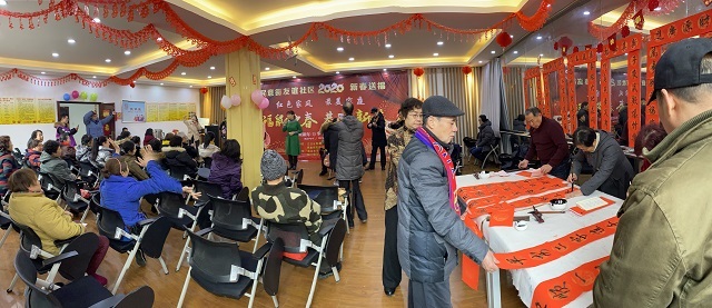新春佳节来临之际,为了增强红色家风文化气息,培育文明风尚,宣扬最美家庭文化建设,民意街友谊社区联合至爱养老中心机构于1月7日上午9:30举办了2020年迎新春“红色家风 最美家庭”文艺汇演活动。出席本次活动的有民意街工委副书记艾青枝、老红军家人代表蔡七七、梦之蓝艺术团、红色旋律艺术团、周桂兰书画室的老师们。活动形式丰富多彩、精彩纷呈,包括歌唱表演《希望的田野上》、旗袍走秀《女人花》、乐器合奏《各族人民大团结》《拉住妈妈的手》、诗歌朗诵《春色满园》、手写春联等,共吸引辖区100余名群众积极参与。