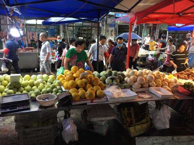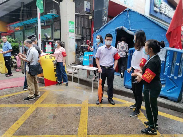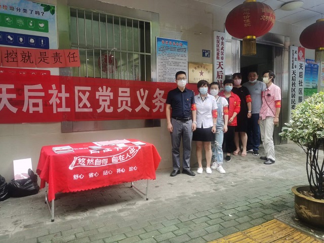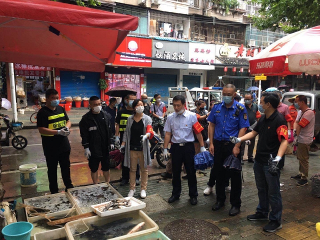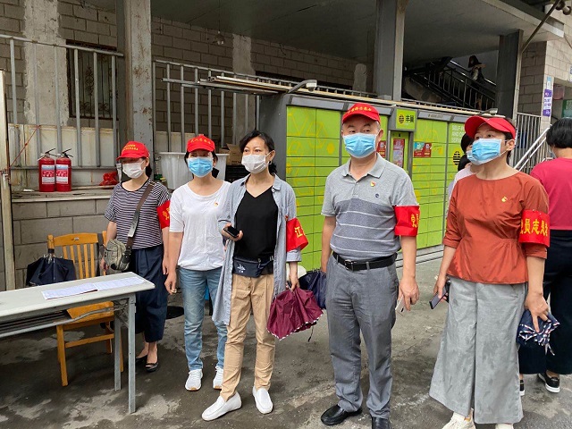 6月20日,民意街机关全体党员、7个“双进双服务”党组织、9个结对共建单位以及社区居民党员共400余名党员参与辖区34个小区出入口值守,开展爱国卫生运动,助力常态化防控,用实际行动将党旗插在疫情防控最前线。工委书记余建清和工委副书记、办事处主任文芳冲锋在前,带领50余名党员先锋骨干抢抓时间、迎风踏雨、全力整治了沿街“马路菜市场”,让居民“菜篮子”拎得更放心。区委常委、区委办公室主任叶劲松,组织部副部长李宝红参加活动。