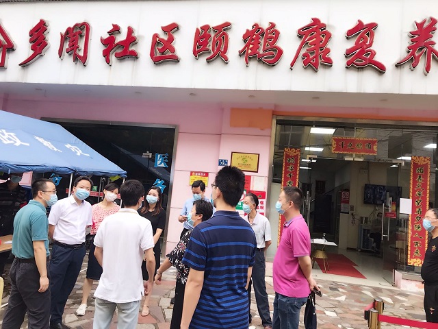 7月13日上午,江汉区副区长曹建、江汉区民政局局长姜凡等一行到民意街多闻社区颐鹤康复养老院开展安全生产和疫情防控工作检查以及指导防汛工作。民意街工委书记余建清、街办事处主任文芳、街办事处分管领导胡震东陪同。曹建副区长认真查看了养老院落实安全生产和疫情防控相关工作措施,了解了在院老人的生活状况,就疫情防控和防汛工作提出了四点工作要求:一是要加强安全生产防范和疫情防控工作,切实保障在院老人的人身安全;二是做好日常消防设备的检查,加强安全防护器材的保存和管理;三是加强工作人员安全生产教育培训,提高工作人员安全生产和服务意识,定期开展消防演练和护理服务培训。四是完善防汛应急预案,突出防御重点,要在重点部位、关键环节,确保值班人员在岗、责任到人、工作到位,要强化防范意识,切实保障老人的生命财产安全,确保安全度过汛期。
