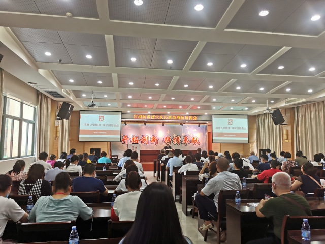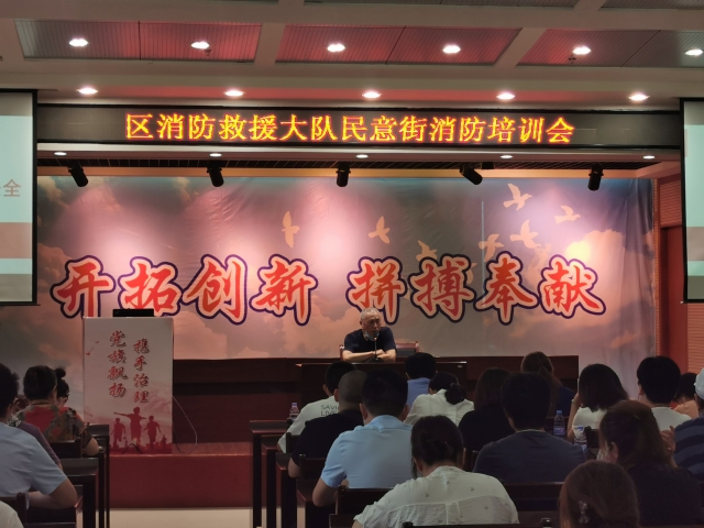8月5日上午,民意街在武汉市江汉区房地产公司二楼会议室召开区消防救援大队民意街消防培训会,街政法主任汤开耀、区消防大队监督员、派出所相关负责人、武汉火人公益消防宣传队、辖区重点单位负责人及各社区群干、安保队员参加培训会。会上就辖区重大火灾隐患金楚龙市场整改情况以及“三合一”“多合一”情况、居民小区老旧电线、无水民用住宅、电瓶车停放充电等安全隐患问题进行了重点强调和培训。会后,在崇安鑫城小区展开消防器材使用教学演练,确保人员操作熟练,切实保障辖区居民的生命财产安全。