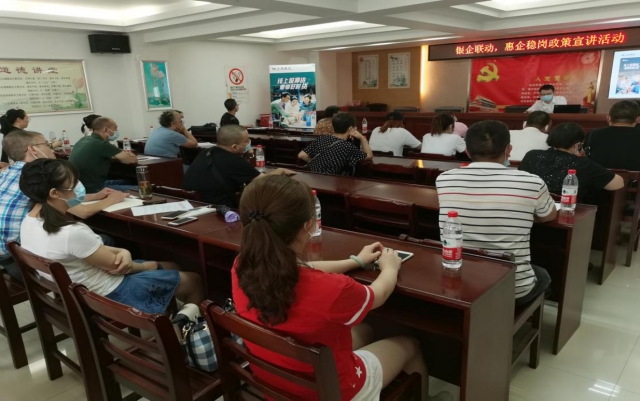 近日,民意街联合区人力资源局、交通银行武汉江汉支行在街8楼会议室举办了“银企联动,惠企稳岗”政策宣讲活动。街辖申报了纾困贷款的30余户个体户以及社区负责劳动就业工作的网格员参会。会上,交行江汉支行详细介绍了纾困资金受理流程,专为中小企业纾困提供的金融产品,特别推荐了创业担保贷款。区人力资源局王小红主任就创业担保贷款的申办,市、区出台的惠企稳岗政策等作了专业讲解,进一步增强个体户在后疫情时代发展的动力和信心。