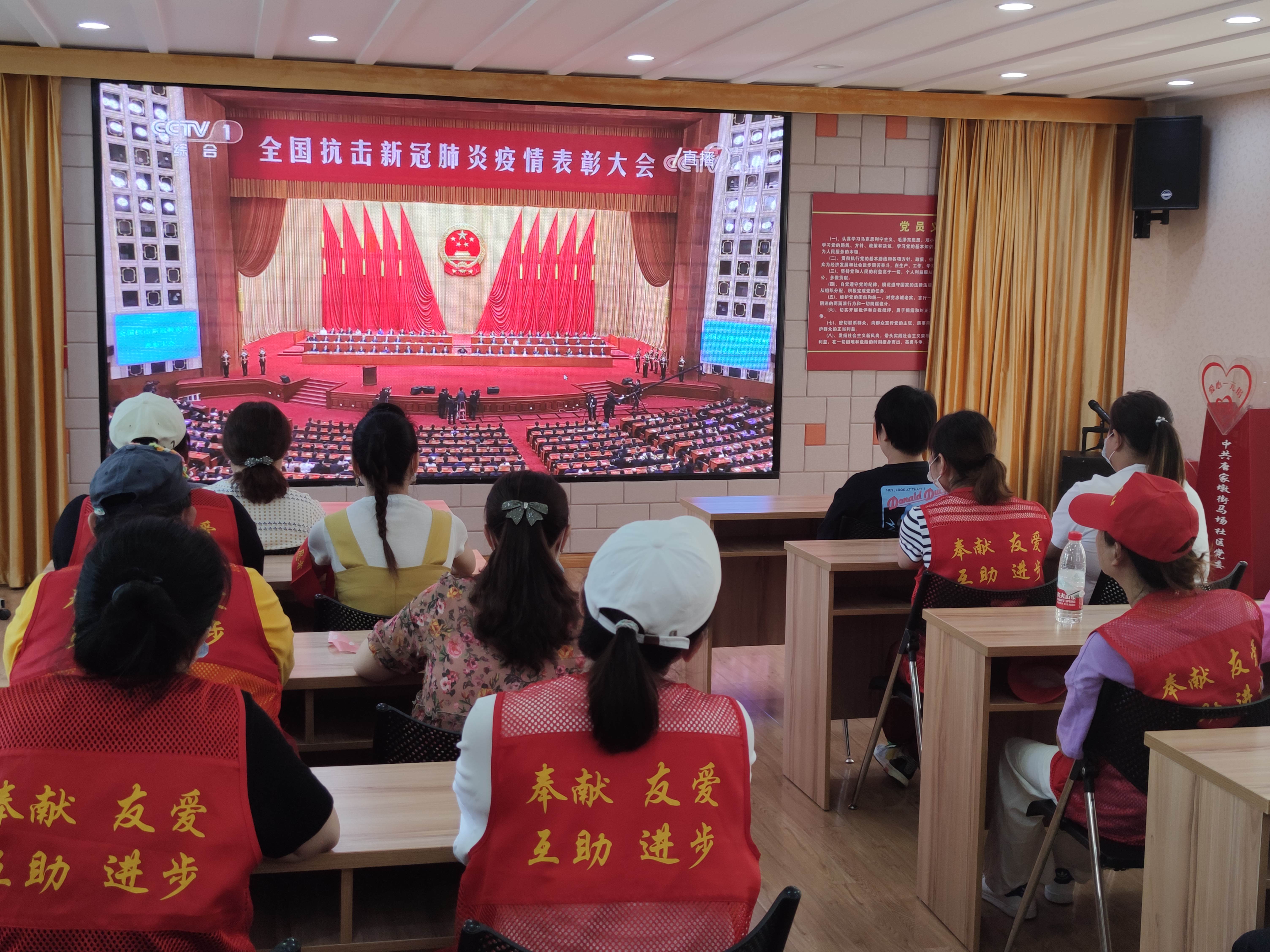 9月8日上午,全国抗击新冠肺炎疫情表彰大会在人民大会堂隆重举行。唐家墩街在机关、在社区、在文明创建一线利用多种形式,组织全体干部职工收看大会实况,认真聆听习近平总书记重要讲话。