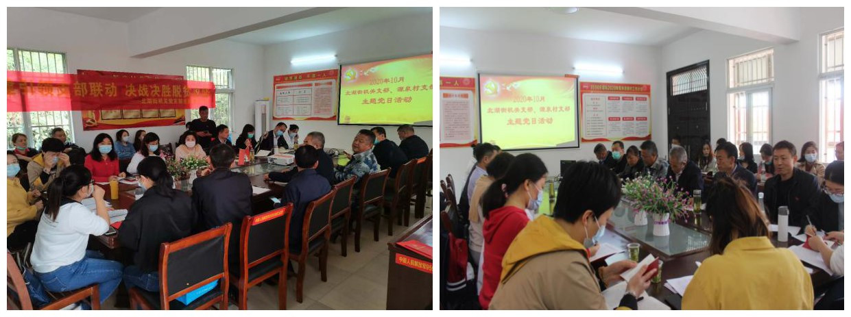 加强学习引领,决胜脱贫攻坚。北湖街机关党支部和源泉村党支部以“党建引领内部联动 决战决胜脱贫攻坚”为主题开展主题党日学习活动,重点学习了《习近平总书记在湖南考察时的重要讲话精神》等相关文件,要求不断提高政治站位、强化责任担当,坚决打好打赢脱贫攻坚战。同时,北湖街领导班子成员与源泉村“两委”成员分析了当前扶贫工作情况,交流了扶贫工作经验,明确扶贫工作内容,为接下来的扶贫工作指明了方向。