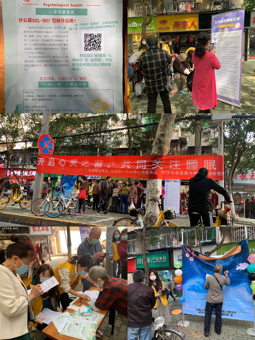 2020年10月19日上午,北湖街“一叶心晴”心理团队志愿者十余人,在中百仓储(北湖店)门口举办了主题为“开启心灵之窗,共同关注睡眠”的心理健康知识户外宣传活动,旨在唤起居民对睡眠重要性的认识,提高居民睡眠质量。