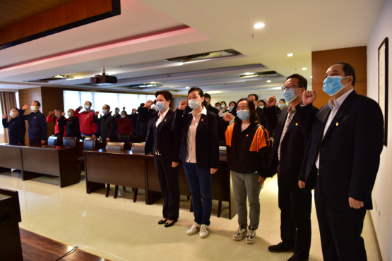 “我志愿加入中国共产党,拥护党的纲领,遵守党的章程......永不叛党。”在武汉科技馆党委书记的带领下,全体党员在庄严肃穆的氛围中重温入党誓词,一阵洪亮刚正的宣誓声激昂在秋雨绵绵的武汉上空,也正式拉开了本次活动的序幕。