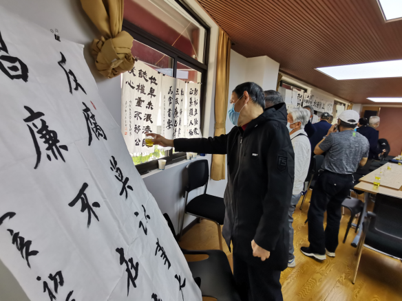 “松竹梅,岁寒三友,廉正清,为官三要。”“位卑未泯济民志,权重不移公仆心。”“劲松立险处,正气显人格。”……刚劲有力的草书,瘦劲清秀的小楷,来到三楼活动现场,由20余幅以“清廉”为主题的书法和绘画作品打造的廉政书画展吸引了不少爹爹婆婆参观。据打铜社区工作人员介绍:参加书画展的并非专业人员,而是来自清风书画社的社区党员中的书画爱好者。大家把围绕“清廉”主题,将大众喜闻乐见的传统书法、绘画艺术与廉政文化相结合,传播清新正能量,能让广大党员和群众在享受艺术熏陶的同时获得启发,引起情感共鸣,进一步增强廉洁意识,筑牢拒腐防变思想道德防线。
