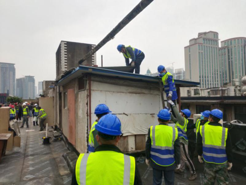 据悉,北湖街前期已多次组织驻街城管执法中队、北湖派出所、街公共安全办、街公共服务办、社区居委会、红色物业、邮三宿舍物业经理及违建业主等多方召开楼顶违建拆除动员会、工作部署会。社区也持续与违建业主进行沟通,做通思想工作,并全程跟进此次拆违作业,保障拆违工作圆满完成。
