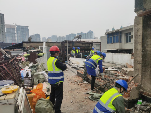 此次行动,北湖街在拆违现场设置警戒组、执法取证组、执行秩序维护组、拆除作业组、医疗保障组等,整合各类执法力量共计90人,各组明确人员及职责分工,联合行动、提升效能,确保老旧小区拆违工作平稳、快速、有序推进。