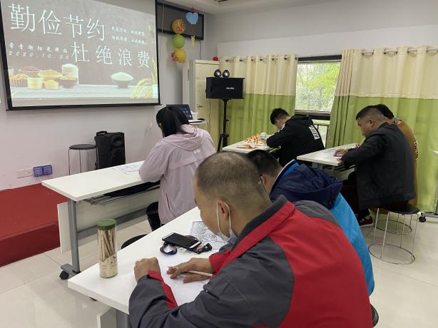 在活动的最后,以“勤俭节约,杜绝浪费”为题,学员每人自制一份手抄报,将自己在刚刚的学习中,印象最深的句子摘抄其中,基本每位学员都将倡议书摘抄下来,“不奢侈、不攀比,厉行节约,反对浪费。从自身做起,从细节做起......”