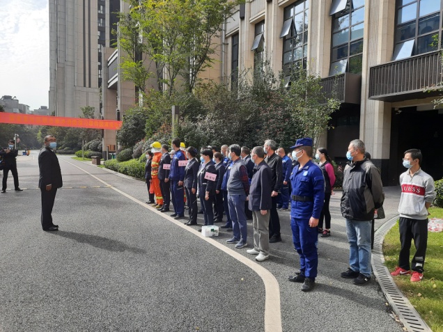 为广泛动员社会各界关注消防、学习消防、参与消防,全面提升全民消防安全素质。使"119"更加深入人心,常青街于2020年11月9日分别在常宏里社区的恒大中心和中城悦城小区进行了消防演练,此次演练联合金碧物业、中城家物业公司参与。街安监站廖建东站长、常青派出所刘军副所长、消防大队郭达指导员、常宏里社区芦国民书记和管段民警张裕坤警官到活动现场进行观看并给予工作指导。