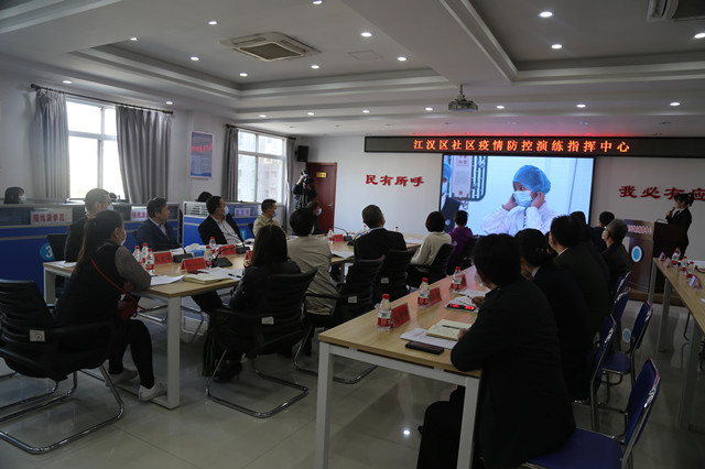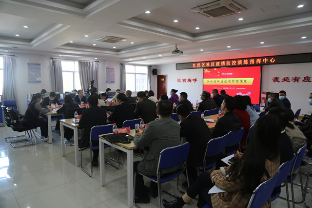 为积极应对新冠肺炎疫情反弹风险,提升各街道社区应急处置和组织协调能力,11月11日下午,江汉区在汉兴街和祥里社区常青一垸小区开展社区疫情防控应急演练。区委书记、区指挥部指挥长张俊勇,区政协主席、区指挥部副指挥长、社区疫情防控组组长许华,区指挥部社区疫情防控组、医疗救治和疾控组及区防输入专班的相关负责同志,各街道主要负责人及相关分管领导在汉兴街办事处4楼调度中心以直播方式进行观摩。区政府党组成员、区指挥部副指挥长、社区疫情防控组常务副组长曹建主持演练。本次演练还特别邀请市指挥部社区疫情防控组殷文军博士、周致敢主任现场点评指导。