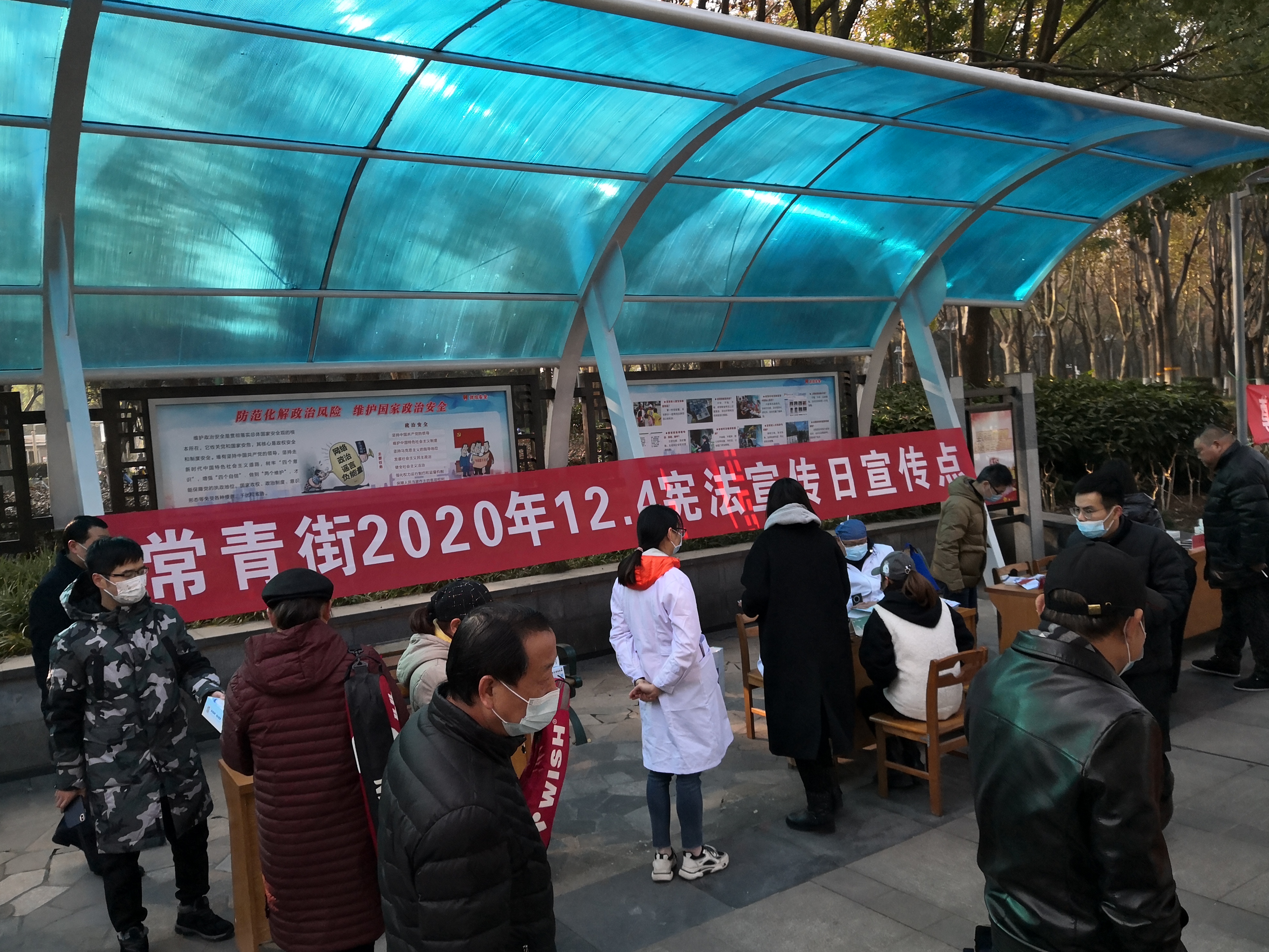 为深入学习贯彻党的十九大和十九届二中、三中、四中、五中全会精神,深入学习宣传习近平法治思想,持续推动宪法学习宣传和贯彻实施,让宪法走进人民群众、走进日常生活,形成宪法学习宣传教育的热潮。12月4日,常青街工委、办事处在后襄河公园广场举办宪法宣传周活动。街道工委、办事处高度重视、周密部署、细致安排,联合了区委办、区税务局、区民政局、区社保处、三恒集团、区企业服务中心、区疾控中心、红会医院、常青司法所等单位一并参加此次活动,营造浓厚的法治宣传氛围。此次活动受到了区委办等领导的高度重视,区委督查室主任王建明同志,区司法局副局长郭华冶同志,常青街工委书记何旭东同志,常青街纪工委书记杨玲同志莅临现场指导法治宣传工作,并对此次活动的开展给予高度肯定。