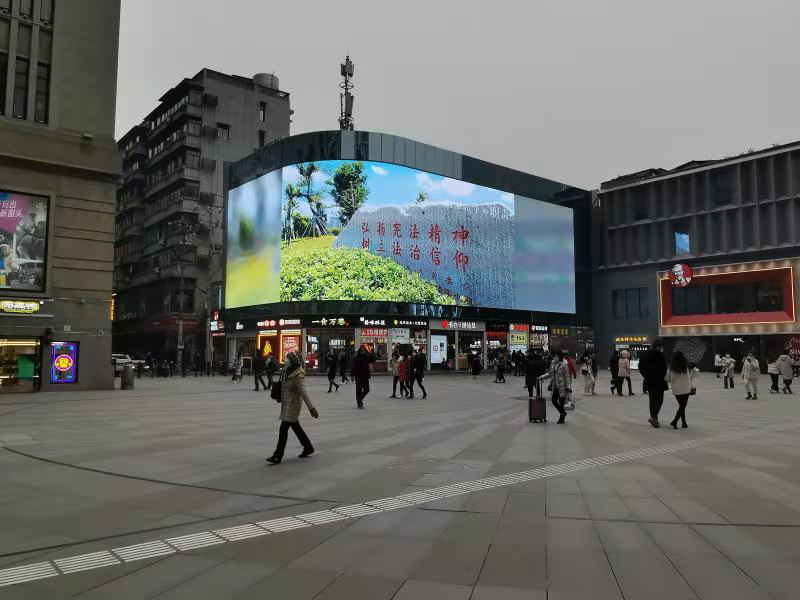 通过中心广场处的电子显示屏进行宪法公共宣传