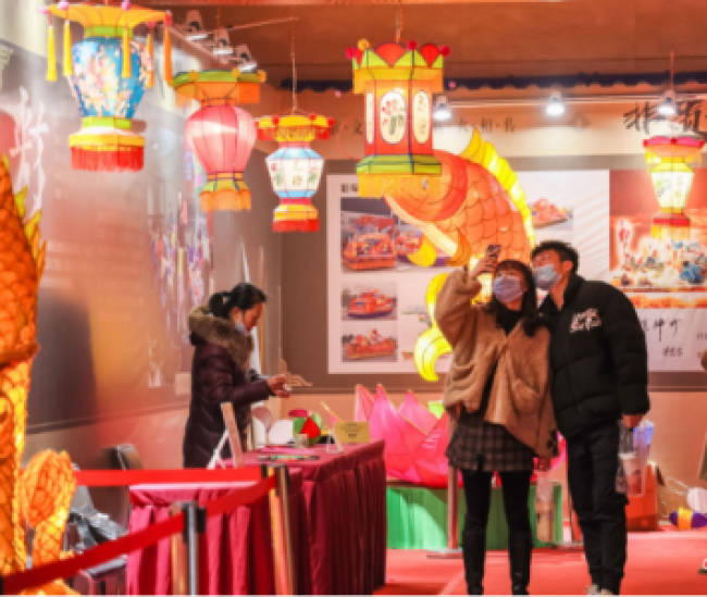 元旦小长假期间,位于江汉路23号(台湾银行旧址)一层举办非遗文化展览,展览包含花灯、刺绣等传统非物质文化遗产项目,流光溢彩的传统灯彩提前带来浓浓的年味儿,其中的一组九龙灯彩曾获国家级大奖,25年后在原来骨架上翻新,再次亮灯,吸引了众多市民游客参观。
